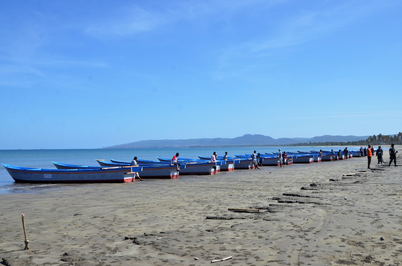 Ia menambahkan adapun bantuan yang di salurkan yaitu 30 unit perahu motor bagi para nelayan berikut dengan kelengkapanya, seperti dokumen sertifikat, alat keselamatan dan lain-lain, dari jumlah bantuan perahu tersebut Kabupaten Pandeglang mendapatkan bantuan sebanyak 20 unit perahu bagi para nelayan di desa Sumber Jaya Kecamatan Sumur, sedangkan untuk Lampung sebanyak 10 perahu”,tuturnya.
