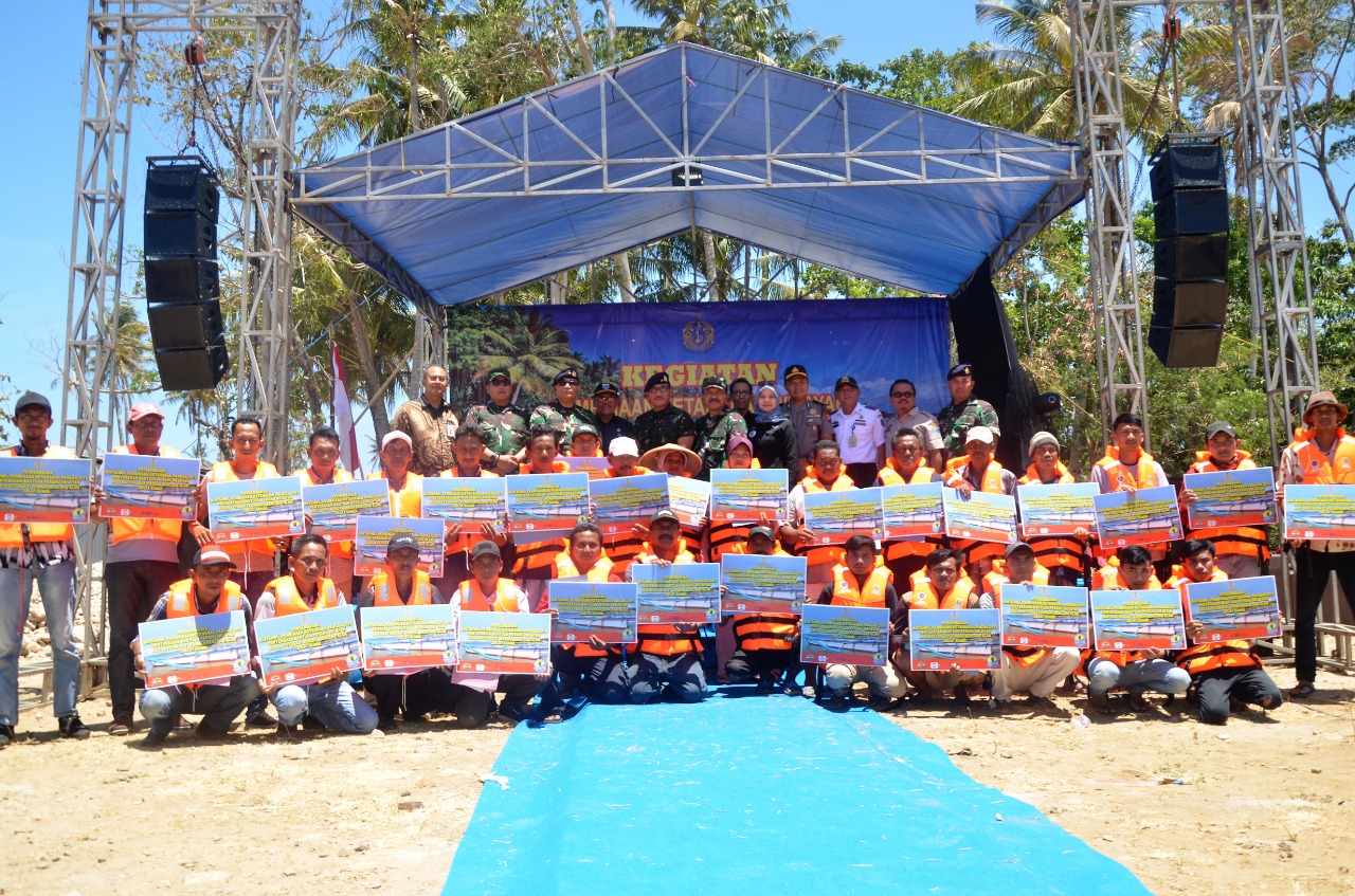 Pandeglang – Pangkalan TNI Angkatan Laut (Lanal) Banten, salurkan 30 unit perahu motor bagi para nelayan yang terdampak bencana tsunami selat sunda. Penyerahan bantuan perahu motor bagi para nelayan tersebut secara simbolis di berikan oleh Waaspotmar Kasal TNI Laksma Ferial Fakhroni kepada beberapa nelayan saat acara Pembinaan Ketahanan Wilayah, di desa Sumber Jaya Kecamatan Sumur, Kamis (7/11/2019).
