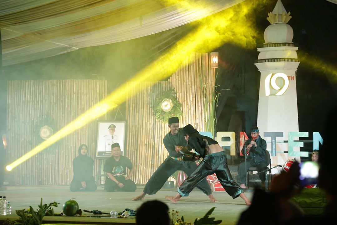 Untuk diketahui, kegiatan tersebut selain di isi dengan penanyangan video mengenai profil Provinsi Banten beserta seluruh potensinya, juga di isi dengan pagelaran seni mulai dari karnaval etnic dari event Cilegon Etnic Carnival 2019, sendratari sejarah Provinsi Banten bertajuk Banten Jawara hingga atraksi debus.