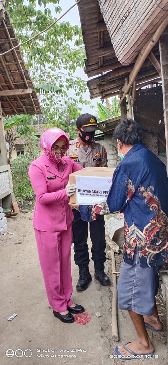 Serang – Kapolres Serang AKBP Mariyono beserta pengurus Bhayangkari Serang membagikan bantuan sayuran, lele serta paket sembako kepada masyarakat yang terdampak pandemi virus corona atau Covid-19 di Kampung Laes Maja, Desa Majasari, Kecamatan Jawilan, Kabupaten Serang, Kamis (3/9/2020). Sayuran dan lele tersebut merupakan hasil budidaya anggota Polsek Jawilan.