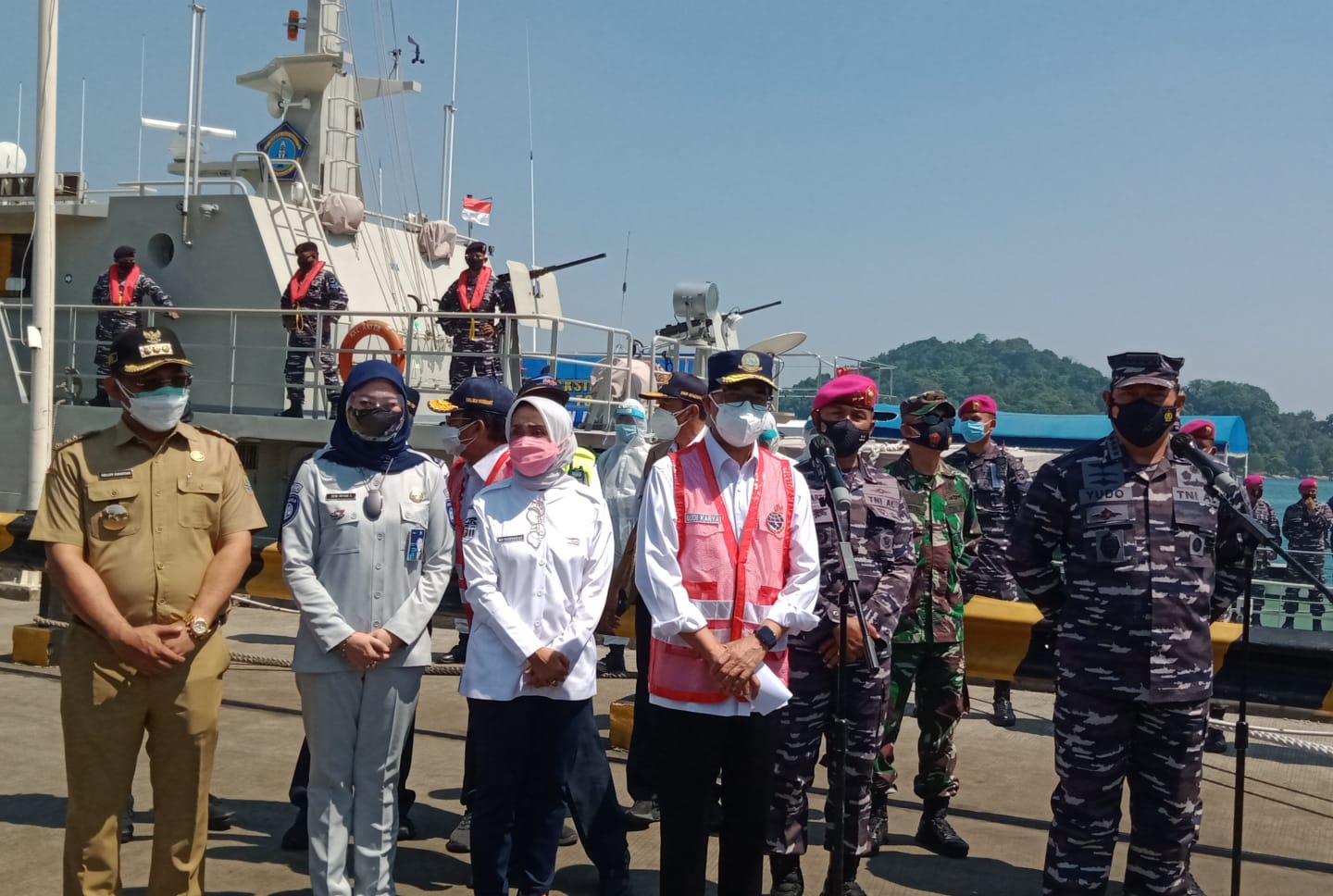 Cilegon – Menteri Perhubungan Ir. Budi Karya Sumadi dan Kepala Staf TNI Angkatan Laut Laksamana TNI Yudo Margono, S. E. M. M. Meninjau pelaksanaan Vaksinasi kepada Masyarakat maritim di Kota Cilegon khusunya wilayah Merak bertempat di Dermaga Eksekutif PT. ASDP Indonesia Ferry Merak yang berada di wilayah kerja Pangkalan TNI AL Banten yang di komandai oleh Kolonel Laut (P) Budi Iryanto, M.Tr. Hanla. Selasa, (27/07/2021)
